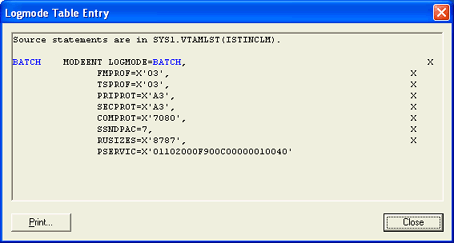 This table entry is compatible with BARR/RJE, but some applications require modification. If a modification is required, the host programmer will create a new table entry by copying the ISTINCLM BATCH logmode table entry and changing it to match the recommended BATCH logmode table entry.