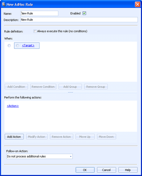 Use this dialog box to create and modify ad hoc rules. You can access this dialog box from the AdHoc Rules Manager dialog box.